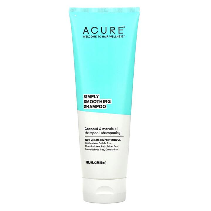 Acure Simply Smoothing Shampoo with Coconut for frizzy, coloured and overworked hair.