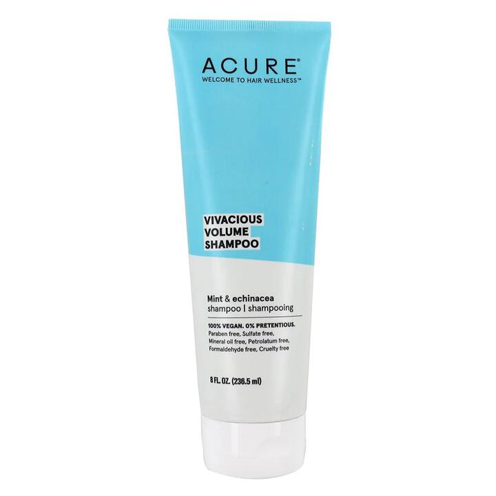 Acure Vivacious Volume Shampoo with Mint and Echinacea for Normal to Fine/ Limp hair Acure Mint & Echinacea Stem Cell Shampoo builds dynamic volume without stripping natural oils or creating build-up. For hair that feels thicker, fuller, and uplifted. Quinoa protein extract supports keratin. Echinacea Stem Cells promote cellular regeneration at the root level. Safe for colour treated hair. Vegan, organic, gluten free, sulphate free, paraben free, cruelty free, phthalate free.