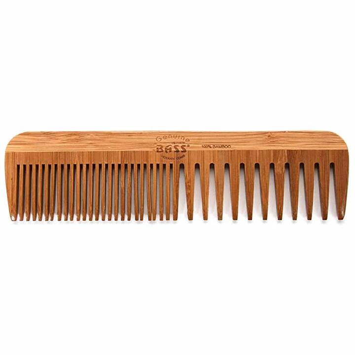 Bass Brushes bamboo combs are made from sustainable bamboo and can be used wet or dry. This fine and medium wide tooth comb is the best of both worlds.
