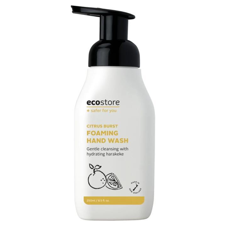 ecostore Foaming Hand Wash in Citrus Burst includes hydrating harakeke (New Zealand flax) to create a soft lather that will gently cleanse, nourish and condition your skin without stripping natural oils.