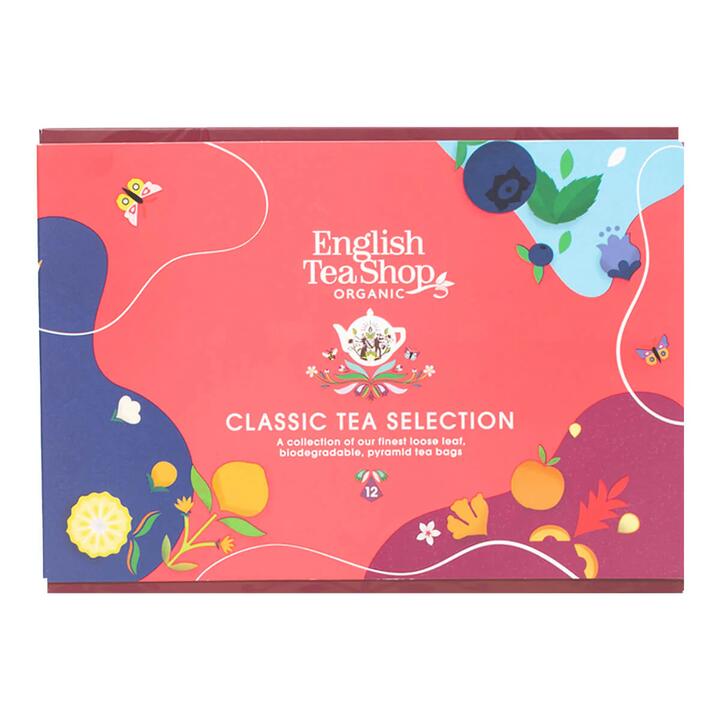 English Tea Shop Classic Tea Prism Tea Collection is a luxurious selection of organic teas specially blended for a superior taste experience. Flavours include: English Breakfast Tea White Tea, Blueberry & Elderflower Tea Lemongrass, Citrus & Ginger Tea Super Berries Tea Jasmine Green Tea Chocolate, Rooibos & Vanilla Tea Certified organic by The Soil Association and Fairtrade International.