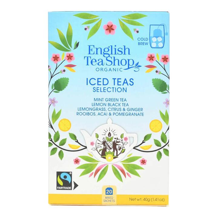 English Tea Shop Iced Teas Selection is a refreshing selection of easy-to-brew iced teas, from minty freshness to zesty and fruity flavours, for a delightful summer experience. Flavours include: Mint Green Tea Lemon Black Tea Lemongrass, Citrus & Ginger Tea Rooibos, Acai & Pomegranate Tea Certified organic by The Soil Association and Fairtrade International.