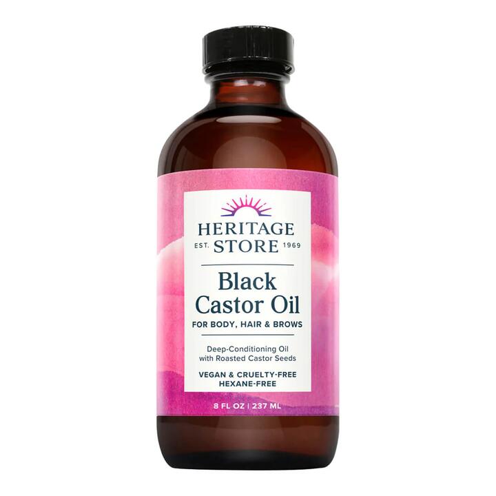 Heritage Store Black Castor Oil uses a traditional African method of pressing roasted castor beans to create a naturally occurring ash.
