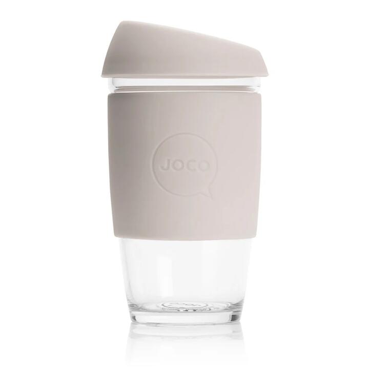 JOCO Large Reusable Glass Coffee and Tea Cup with a Sandstone Silicone Lid and Band. JOCO make reusable glass cups to help reduce the number of single use plastic cups used everyday. Every year over 500 billion disposable cups are used worldwide. The majority go to landfill and don’t break down adding to the waste issue we have globally. There is a better way and that is using a reusable cup. JOCO’s cups are made from glass and artisan blown so they are made by hand. Glass is preferred by many when drinking your coffee or tea. They have a silicone band so you can hold your drink and a silicone lid. The one-way lid means no more coffee splashes when you are on the go. The specially designed nose-dome feature means no more nose to lid collisions. BPA Free. Glass Cup with a Silicone Lid and Silicone Thermal Sleeve 16oz/ 454ml capacity BPA & BPS free Durable and dishwasher safe Glass Cup Artisan Blown Anti-Splash Lid Thermal Silicone Sleeve Microwave, Dishwasher & Freezer Safe Recyclable Material Designed in Australia