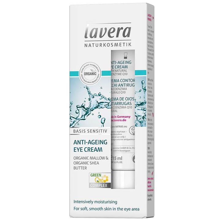 Lavera Basis Anti-Ageing Eye Cream Q10, a Hydrating Eye Cream for Mature & Sensitive Skin Types A lightweight eye cream that intensely hydrates and helps to minimise fine lines and wrinkles. Lavera has specially developed a formula combining natural coenzyme Q10 with five powerful, active ingredients. Organic Mallow and Shea Butter moisturise and help to gently smooth the delicate eye area. Vegan, cruelty-free, and made with natural ingredients. Made in Germany. Packaged in a recyclable plastic container and cardboard box. Lavera was founded in 1987 in Germany and offers a complete range of natural and organic skin care, body care and hair care that is Certified Natural and Cruelty Free by NATRUE. They are free of harsh ingredients so no SLS’s, parabens or preservatives. Lavera’s focuses on making products ideal for sensitive skin, allergies and other skin conditions. Lavera use plant-based ingredients and we only stock the vegan range at F&F.