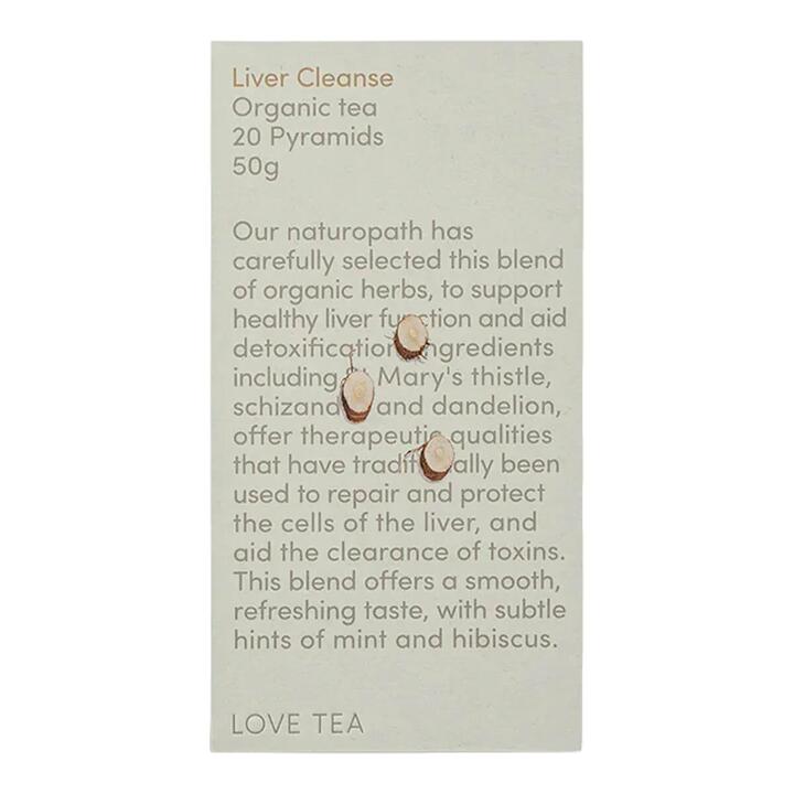 Love Tea Liver Cleanse Pyramid Tea Bags contain a blend of organic herbs that has been carefully selected by a naturopath to support healthy liver function and aid detoxification.