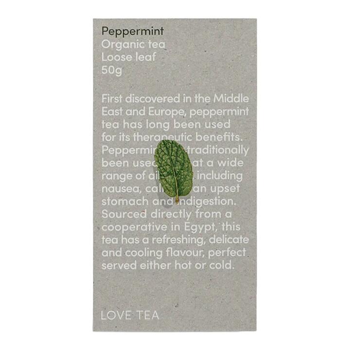 Love Tea Peppermint Loose Leaf Tea, Refreshing and Helps with Nausea and Digestion. This refreshing, and delicious, peppermint tea has been sourced direct from a cooperative in Egypt. Peppermint can help with digestion, nausea and can be served hot or chilled. Origin: Egypt. This blend is caffeine free. Certified Organic by the ACO. Donate to 1% For The Planet. All packaging biodegradable. Love Tea is a beautiful brand from Melbourne. They are one of the best businesses we’ve come across in terms of ethics, quality and commitment to your health and the environment. No stone is left unturned. Founded in 2006 by two Naturopathy students they have come a long way and now have a huge range of loose and bagged teas that we are proud to offer to you at Flora & Fauna. Love Tea is Certified Organic by the ACO and they seek the best ingredients possible to make stunning tea for every occasion. Something we particularly love is their packaging. Everything is biodegradable including the pyramid tea bags and the ‘plastic’ wrap they come in. The box is recyclable and printed with vegetable based inks. What more can we ask for!