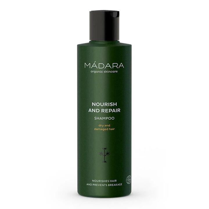 This rich shampoo works to gently cleanse and repair dry and damaged hair. Formulated with Northern Nettle and Quince Extract to help prevent breakage and split ends for silky smooth hair. For best results, use with Madara Nourish And Repair Conditioner.