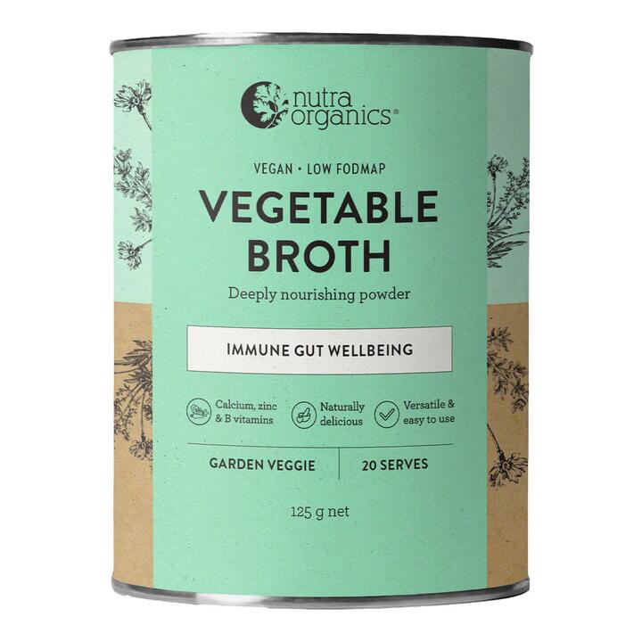 Nutra Organics Vegetable Broth in Garden Veggie is naturally nourishing with calcium, zinc, folate and B vitamins to support immunity, energy and gut wellbeing. Naturally delicious and gently refractance dried into a powder for maximum nutrients, our broths won’t be beaten on flavour & nutritional benefits. Ready in seconds, as tasty and nutritious as homemade and easy to take on the go. Vegan broth alternative Contains 10 veggies and herbs, plus organic red miso Supports immunity, energy and gut Drink on its own or add to any cooking