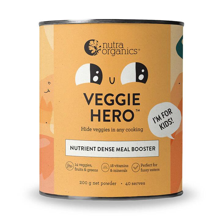 Nutra Organics Veggie Hero is a heroic blend of 14 veggies, fruits and super greens designed for kids’ taste buds and parents’ peace of mind that easily hides in cooking. No more nagging, pleading and bribing for the broccoli to go down, Veggie Hero is here to save the day from fussy eating moments and meal time veggie standoffs. Containing 18 bioavailable vitamins & minerals from pure, organic wholefoods, including vitamins A, C, D, E, B vitamins, zinc, folate & iodine, Veggie Hero supports fruit and veggie intake, immunity, growth & development and energy.