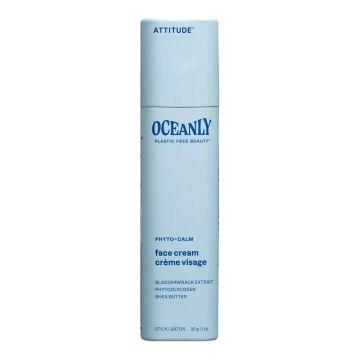 Oceanly Phyto-Calm Face Cream stick nourishes and comforts dry, sensitive skin with shea butter, phytoglycogen, and soothing bladderwrack extract. Apply after your serum in the morning to maintain hydration and calm the skin.