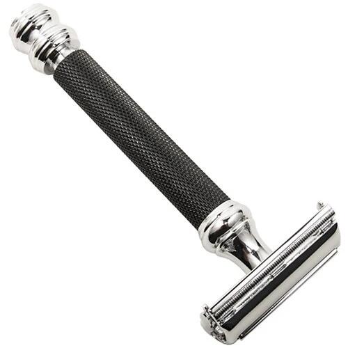This heavyweight safety razor is a new addition to the range providing you with a confident and close shave. It comes with a distinguished black and chrome plated handle. It has a traditional butterfly, twist-to-open, design and will deliver a smooth shave when used with a quality blade. Blades need to be purchased separately. Can be used with Shark or Astra Blades.
