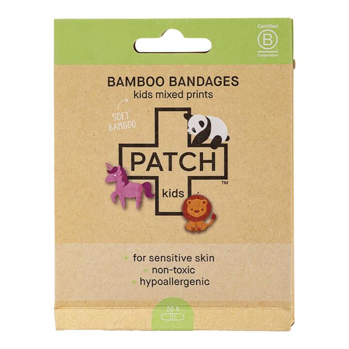 PATCH Kids Bamboo Bandages – Mixed are made with super soft bamboo fabric and gentle pressure sensitive adhesive (PSA), and are natural, breathable, hypoallergenic, and biodegradable strips designed to help your skin.