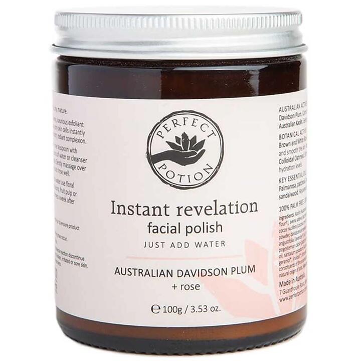 Perfect Potion Instant Revelation Facial Polish is a luxurious gentle exfoliant made from brown and white granules to buff away dry skin cells, revealing a radiant complexion. This vegan and cruelty-free facial polish is suitable for those with normal, dry or mature skin types.