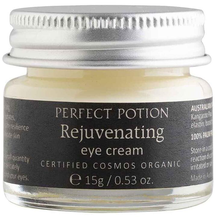 Perfect Potion Rejuvenating Eye Cream is a vegan and cruelty-free smooth cream that hydrates, protects and improves firmness of the delicate eye area. This nourishing eye cream contains botanical actives Rosehip, Carrot and Shea Butter to replenish essential fatty acids and vitamins. These active ingredients promote skin suppleness and reduce skin dryness.Â