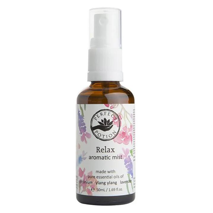 Perfect Potion Relax Aromatic Mist, unwind and release unwanted tension with Perfect Potion’s Relax Aromatic Mist wherever you go. Mist your body from head to toe or around the room to encourage your mind to relax. This vegan and cruelty-free mist contains pure essential oils of geranium, ylang ylang and lavender.