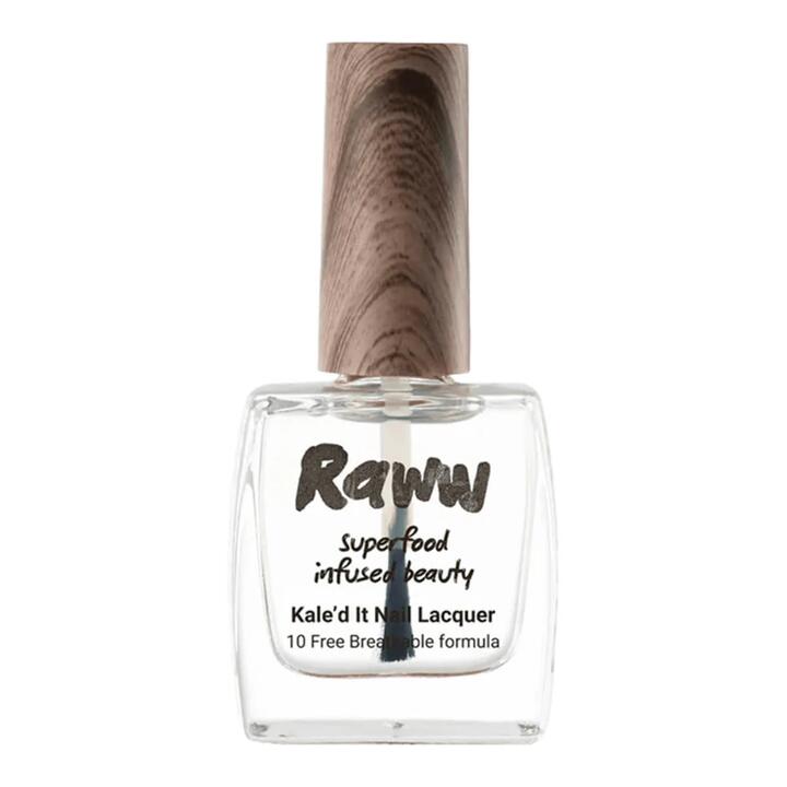 Raww Kale’d It Nail Lacquer – Diamond Shine Top Coat is a breathable, non-toxic, clear top coat nail polish with a kale protein infusion.