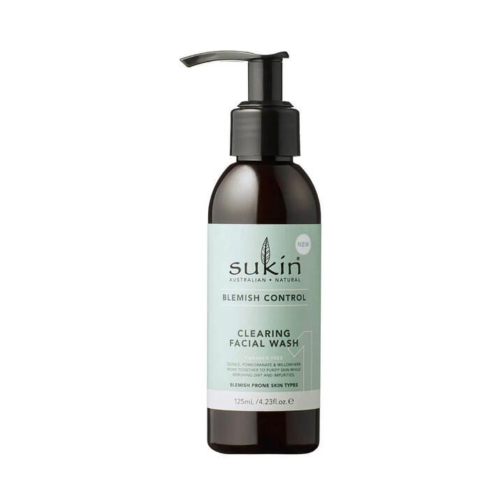 Sukin Blemish Clearing Facial Wash, for blemish prone skin types The Sukin lightweight gel cleanser combines Eucalyptus, Tea Tree & Pomegranate to purify skin while removing dirt, make-up and other environmental impurities. With Quince, Willowherb & Coconut keeping skin hydrated and the complexion clear. An invigorating scent of Eucalyptus refreshes the senses. Eucalyptus helps to reduce the prevalence of acne causing bacteria on the skin and reduces the appearance of redness associated with breakouts- win!