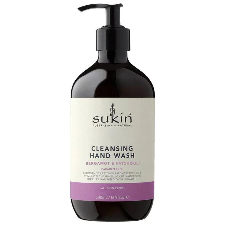 Sukin Cleansing Hand Wash, Bergamot & Patchouli, suitable for all skin types. The Sukin soap-free Bergamot & Patchouli Hand Wash delights and stimulates the senses while leaving skin clean and fresh. Jojoba, Avocado and Rosehip Oils are combined to purify, hydrate and soften the skin while cleansing. With calming Aloe Vera, skin is left feeling soothed and lightly hydrated.