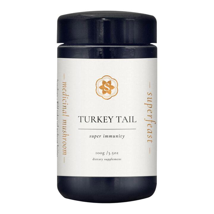 SuperFeast Turkey Tail Mushrooms are renowned by Taoists as a premier immune-supporting herb. Traditionally, turkey tail is used to boost qi, support bone health, tone the liver, and nourish gut health. These mushrooms are carefully water-extracted and sourced using the Di Dao method from China’s Changbai Mountains.