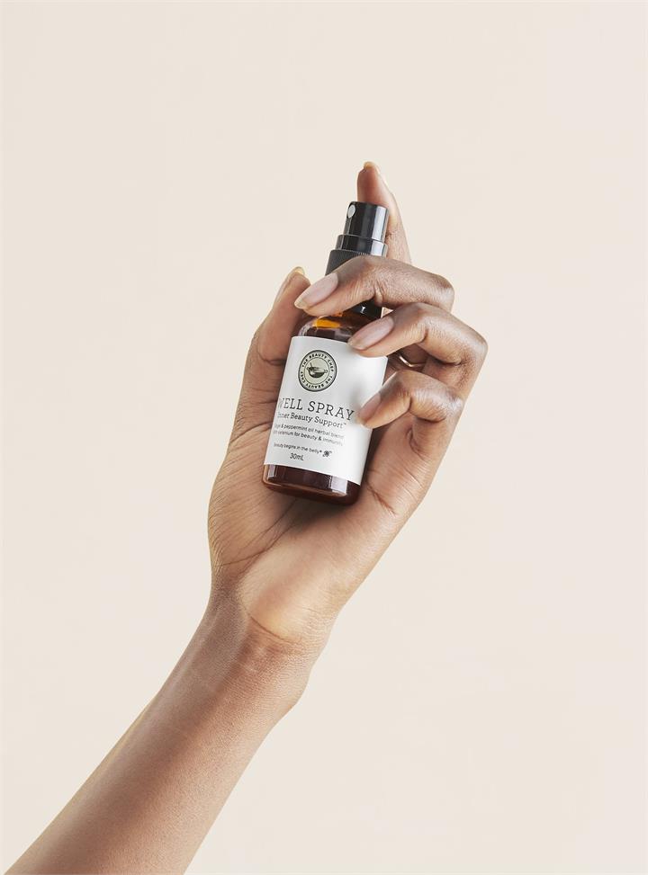 Beauty. Immunity. Digestion. Who: Anyone looking for a daily wellness companion – to help support digestive health, beauty, immunity and wellbeing – on the go. Support your health, beauty, immunity and wellbeing with WELL SPRAY Inner Beauty Support – the ultimate holistic health and travel companion. This herbal ingestible mouth spray contains a unique combination of nutrients, bio-fermented superfoods such as pomegranate and elderberry as well as herbs including olive leaf, sage and calendula. The formula also contains selenium, a mineral essential for normal immune function as well as the maintenance of healthy hair and nails while the addition of biotin is important for nutrient metabolism, hair and skin health.With a refreshing peppermint taste, WELL SPRAY is designed to support your health, immunity and wellbeing when you’re on the go and contains ingredients which have been bio-fermented with probiotics for a healthy belly, and to promote glowing skin from within. Perfect for travel – keep WELL SPRAY in your handbag, pop it on your desk at work or in your overnight bag.