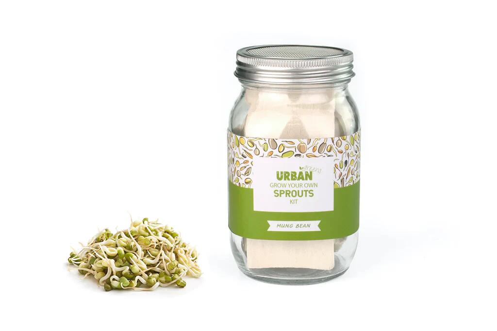 Urban Greens Sprout Jar Kit Mung Beans contains everything you need to grow your own fresh mung bean sprouts.The kit includes:1 litre glass sprout jar with 316 grade stainless steel mesh lid1 Birch timber inverted jar stand1 packet 100g Mung Bean Sprouting SeedsInstructions